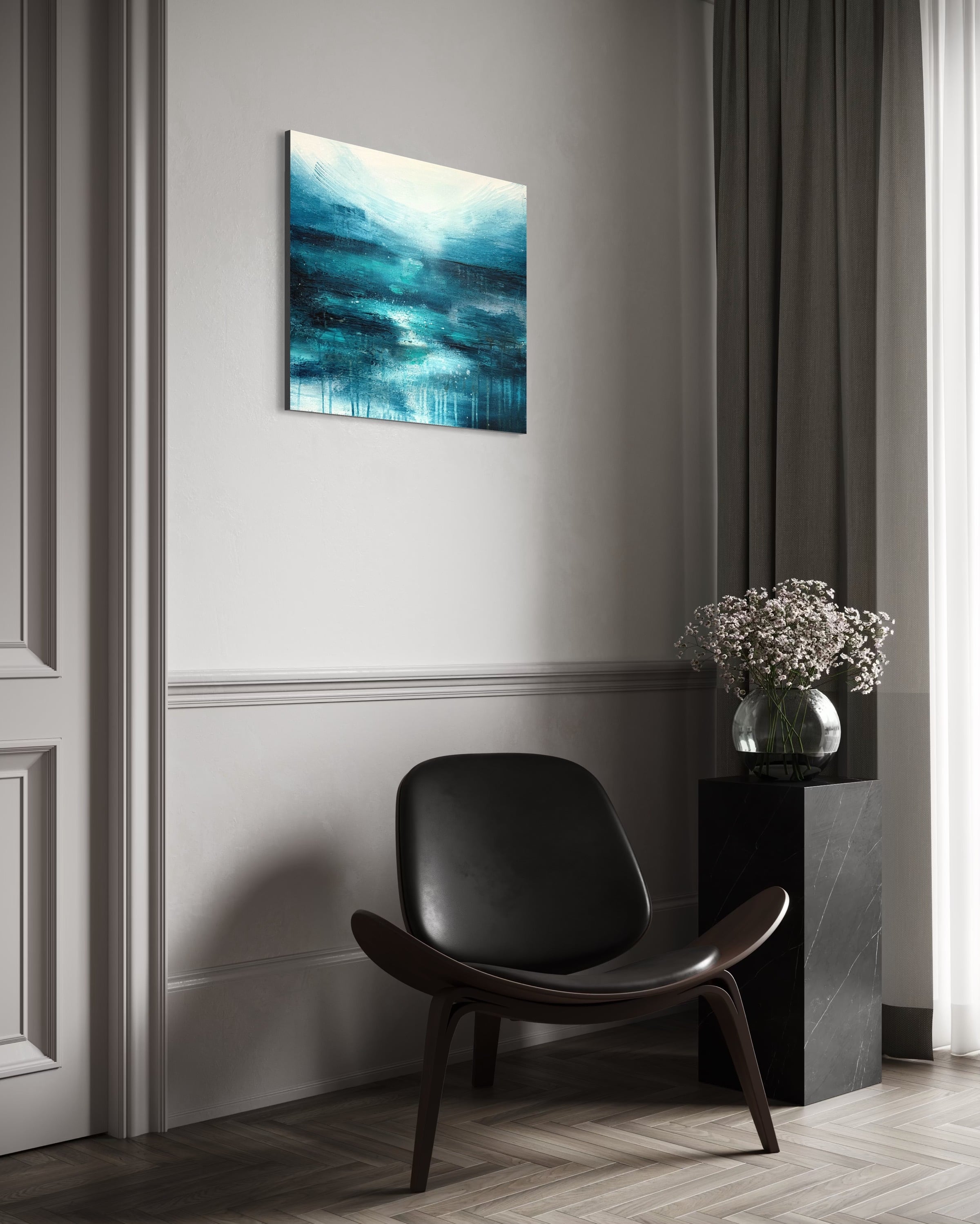 木製枠キャンバスのため、額縁が無くても画鋲などに引っ掛けて壁に掛けて飾ることができます